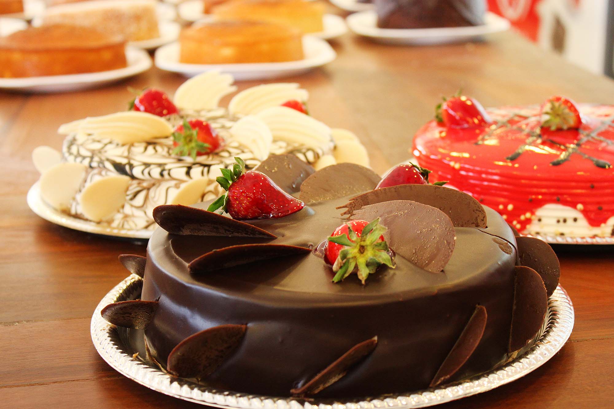 pão de ló de chocolate, recheado de chantily de chocolate, brigadeiro e suflair com cobertura de chantily de chocolate, ganache e suflair |